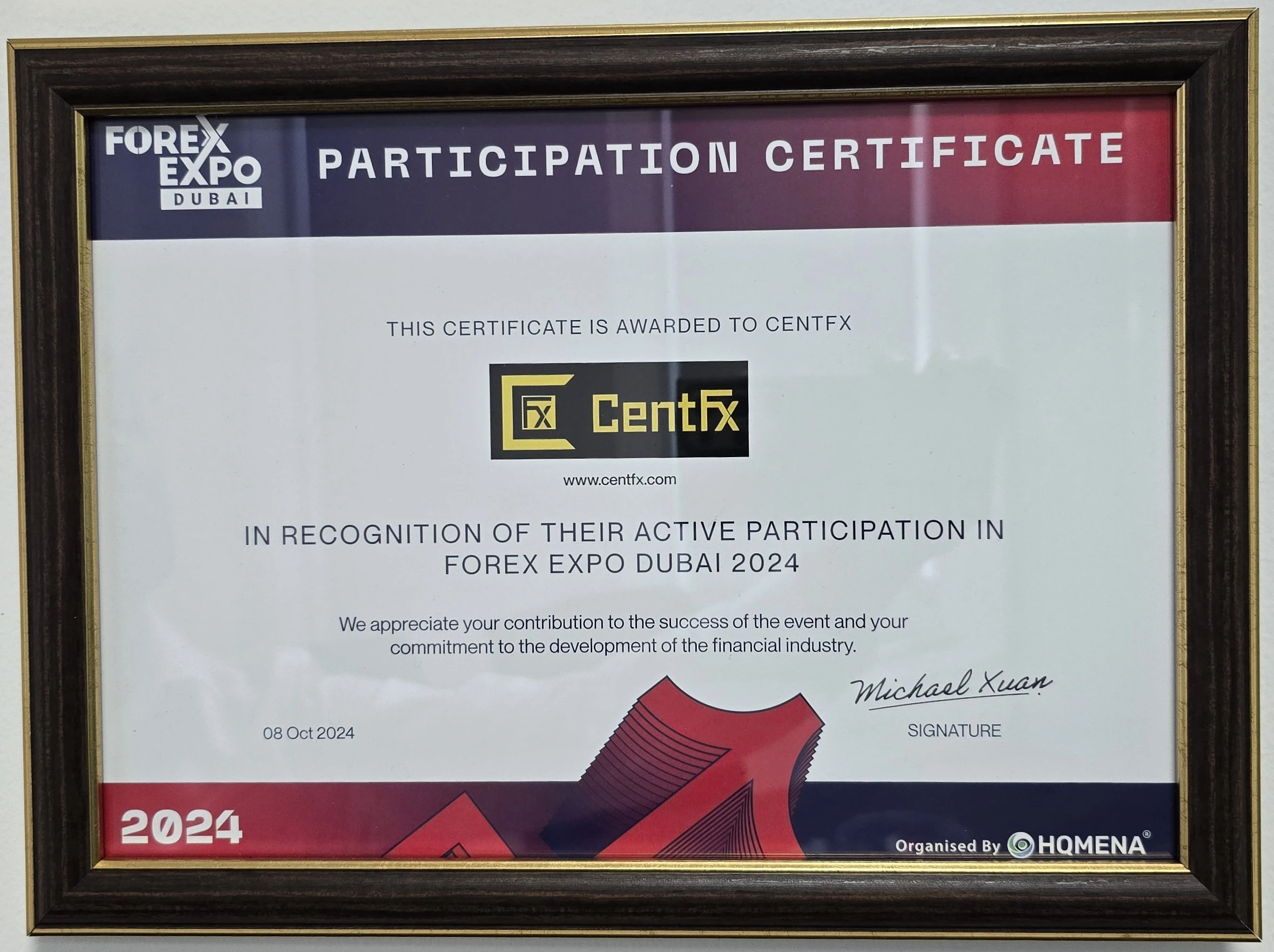 फॉरेक्स एक्सपो द्वारा भागीदारी प्रमाणपत्र प्रदान किया गया - दुबई - अक्टूबर 2024